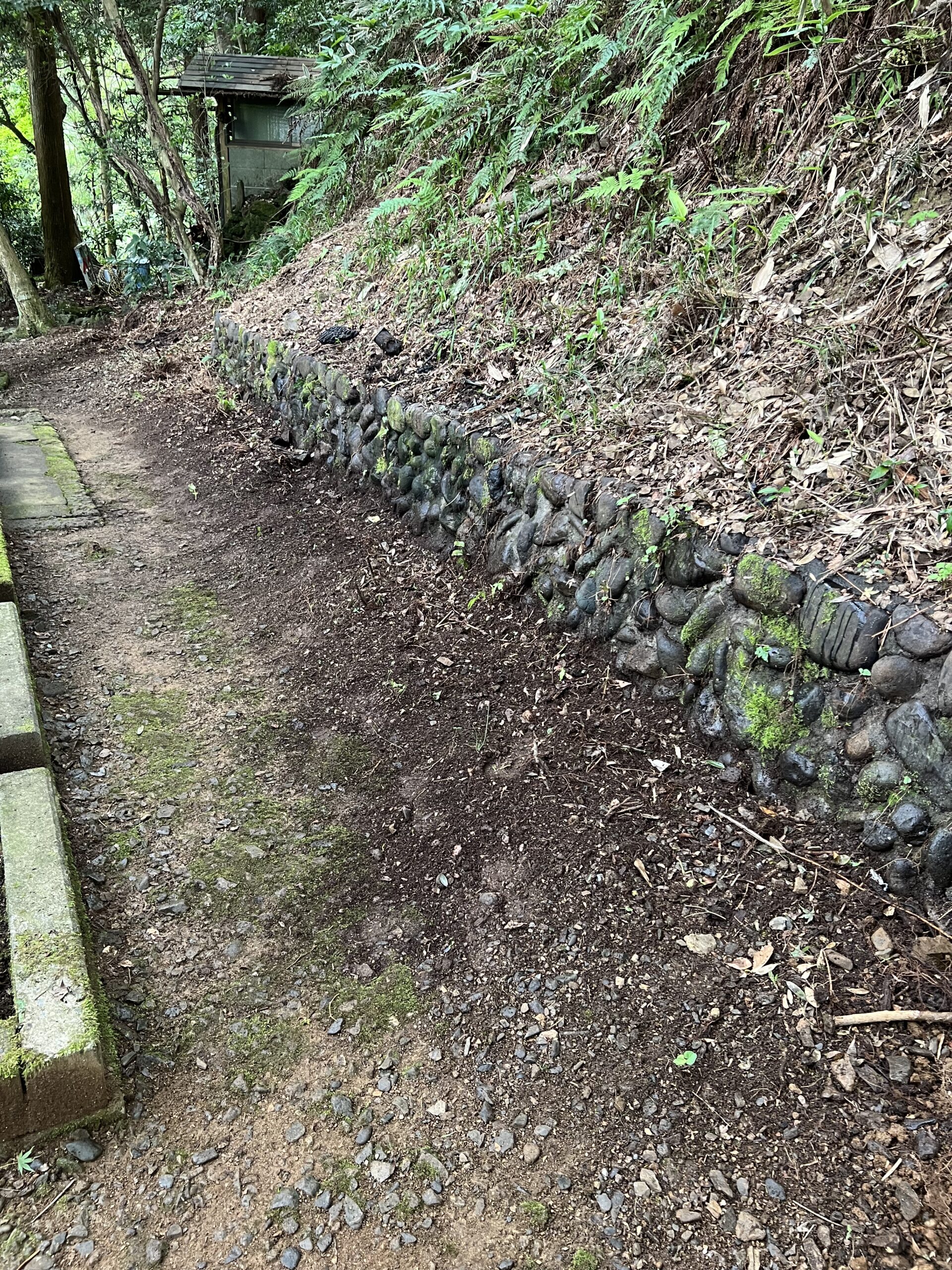 時間の経過と共に山側から土や岩が落ちてきます。