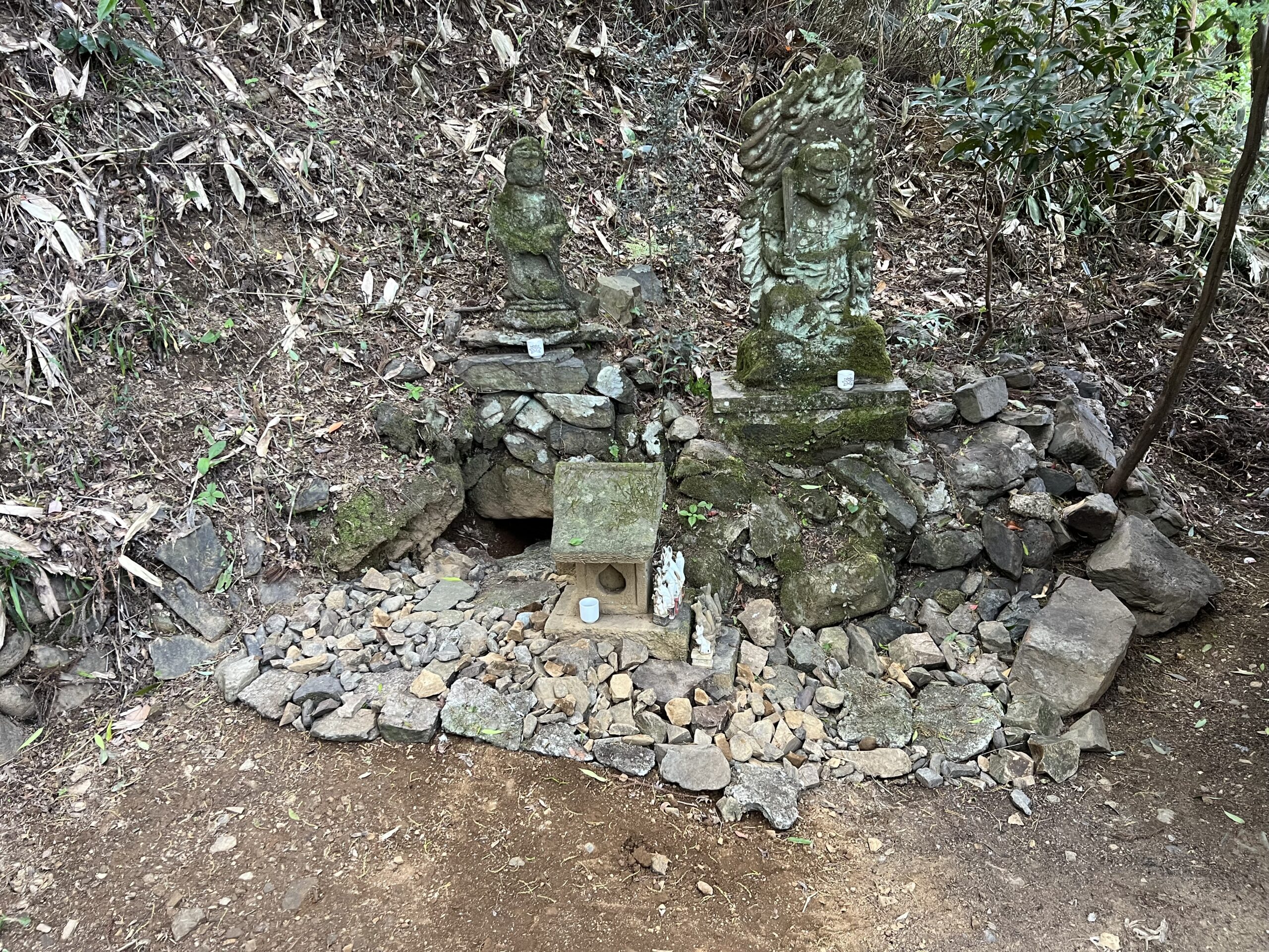 左の写真は土しか見えませんが、右の写真は石垣があります。
