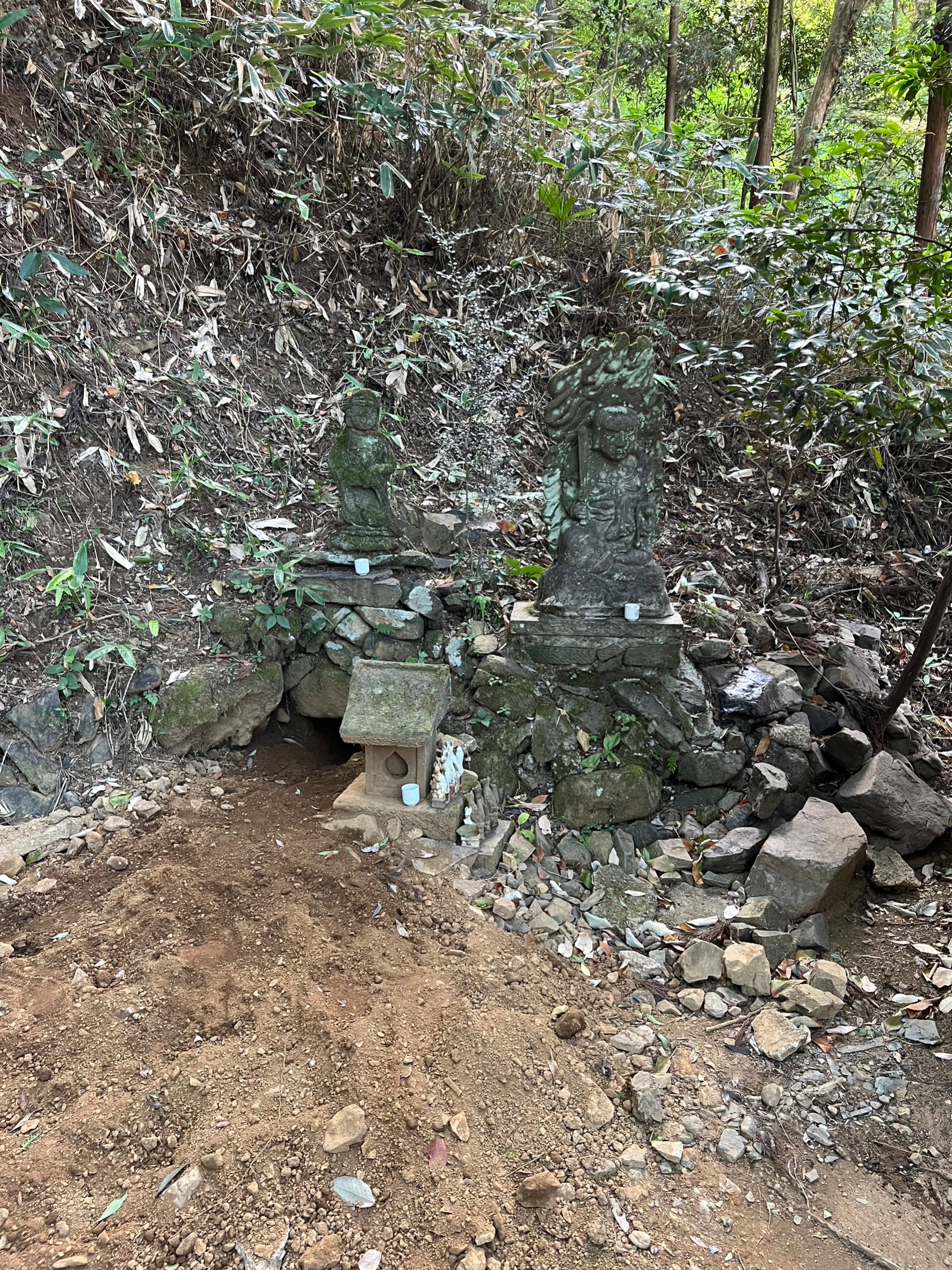 左側は石垣の草とかをとった後だと思うけど、まだ土が被ってる状態ですね。